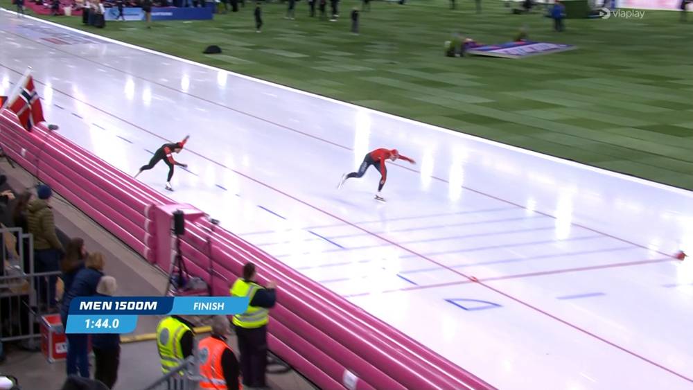 I det nest siste paret klokka nordmannen inn på 1:44.64, og stjernene Kjeld Nuis og Jordan Stolz som gjekk sist klarte ikkje å slå tida hans.